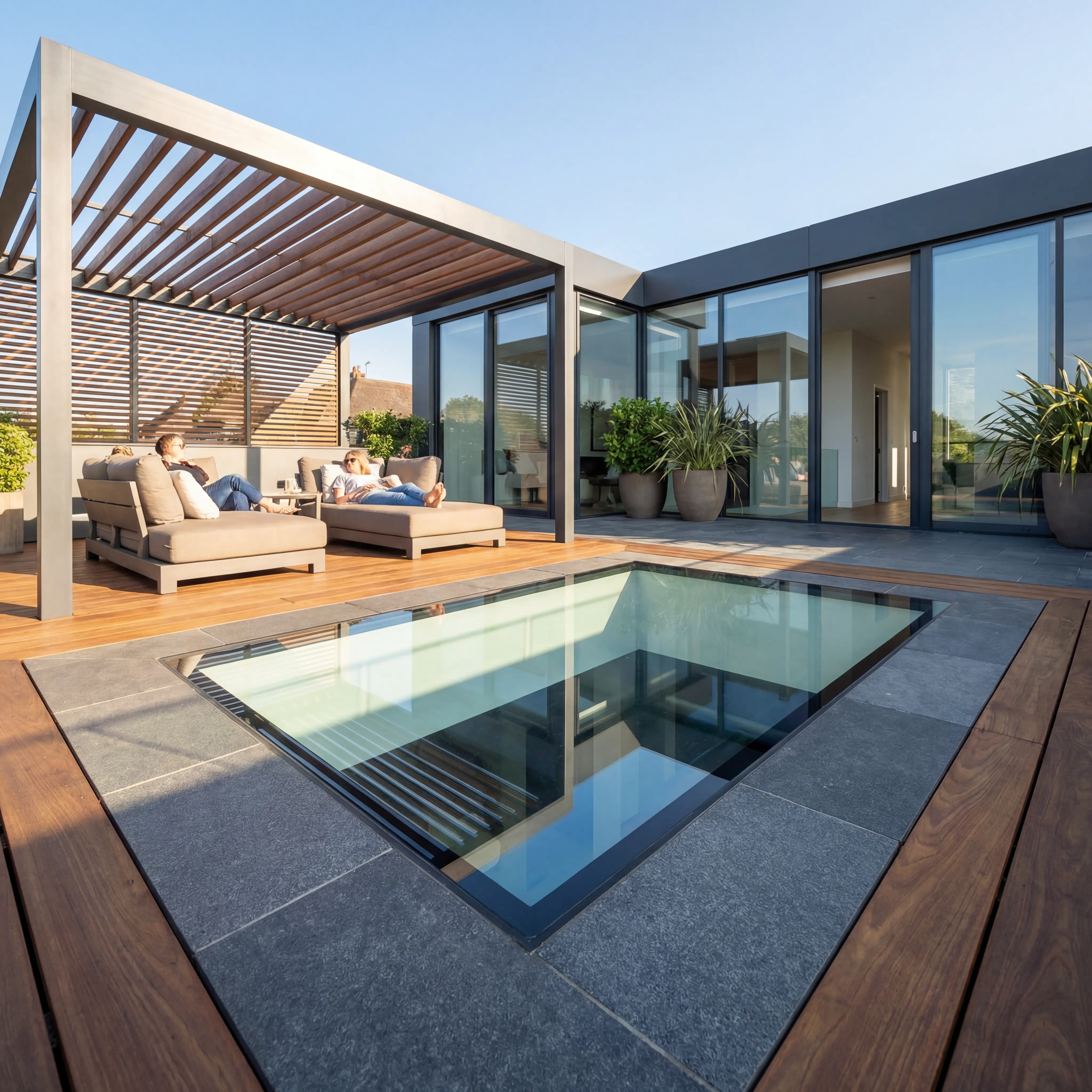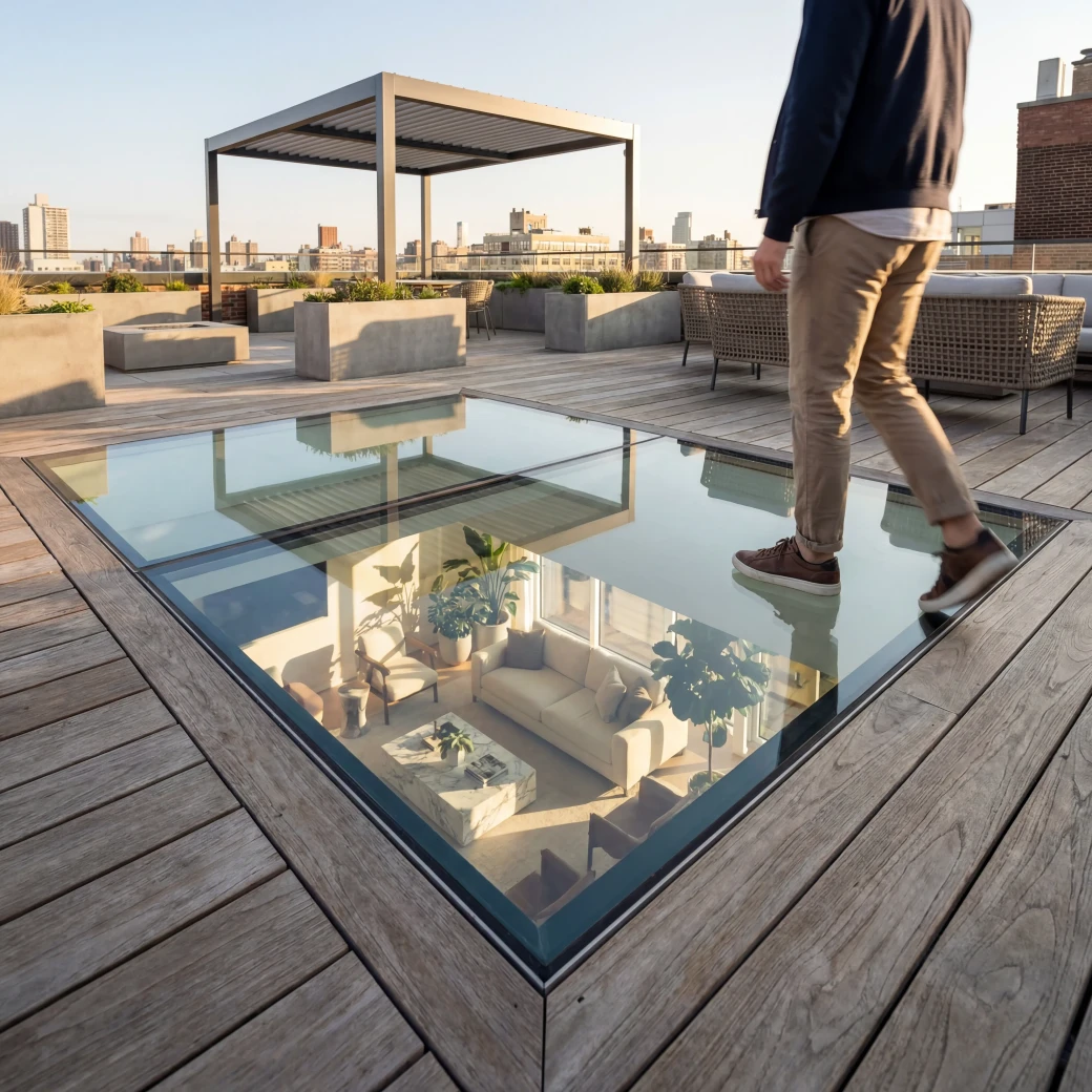 Example: A 1000mm x 1000mm skylight will have a top pane of 1050mm x 1050mm.Pitch Requirement: Minimum 5° pitch to prevent water pooling.